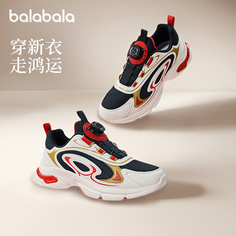 儿童鞋 巴拉巴拉男童防滑运动鞋 2025秋季 新年拜年红鞋 中大童慢跑鞋