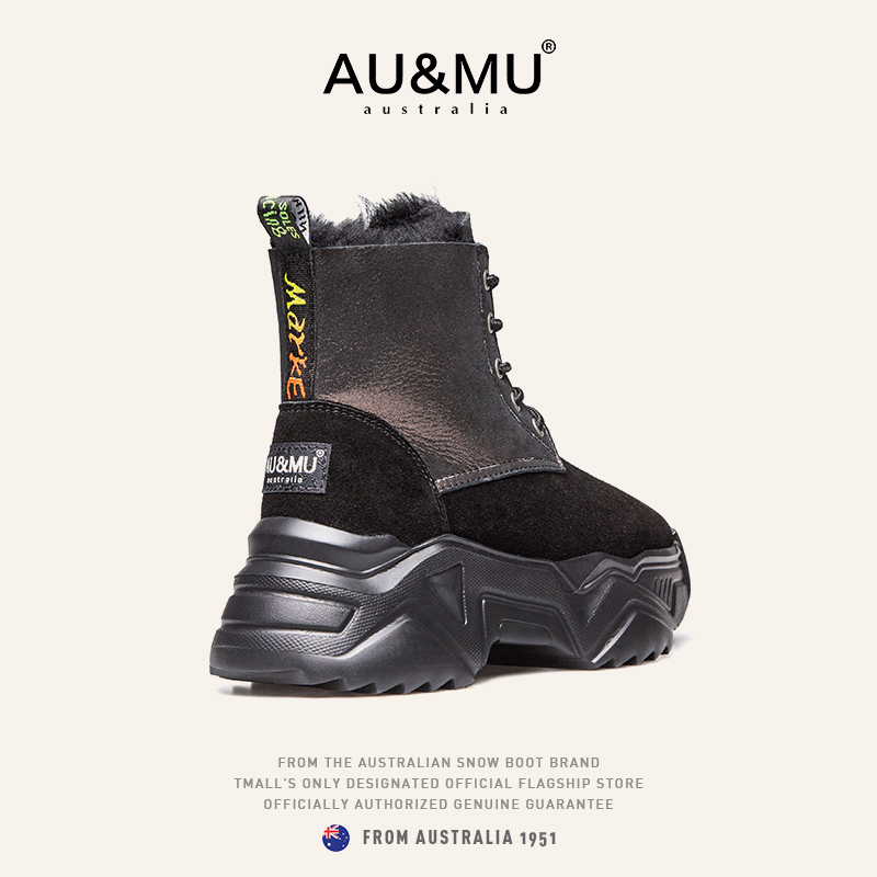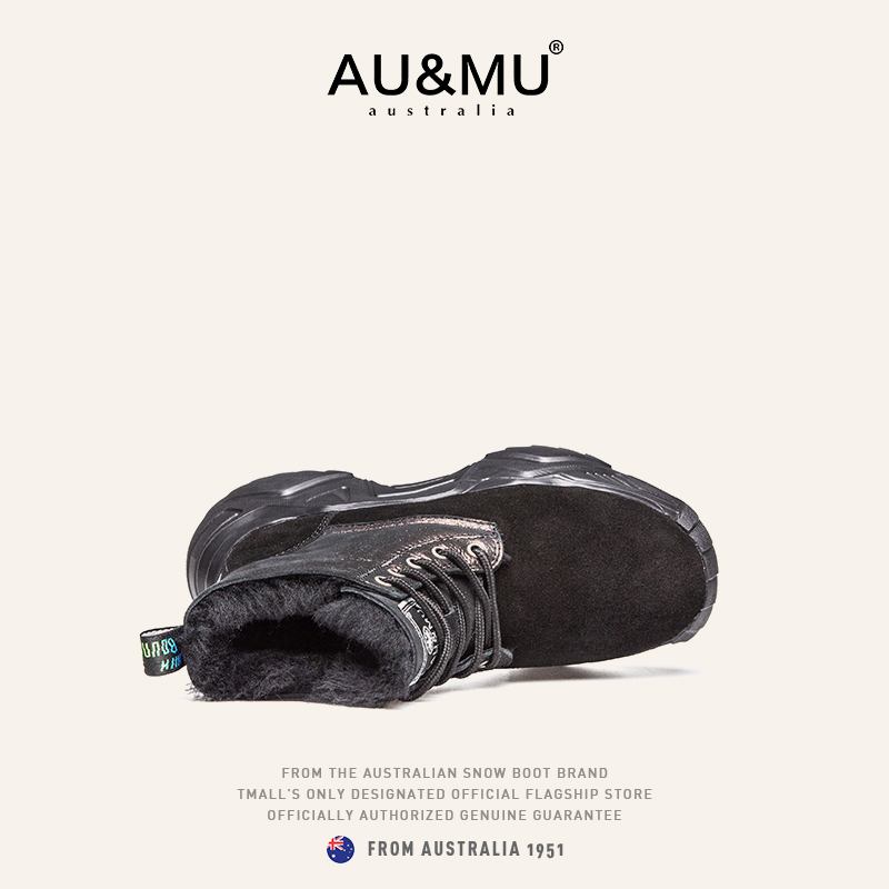 绑带厚底增高棉鞋 时尚 女冬加绒靴 2025新款 AUMU皮毛一体雪地靴女款