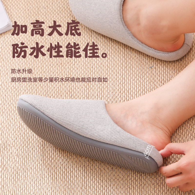 女家居室内木地板软底无声防滑保暖家用男士 秋冬季 静音棉拖鞋 日式