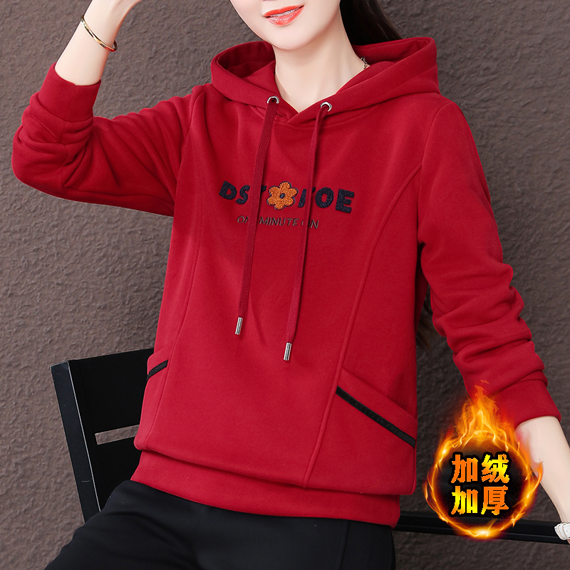 中年妈妈春秋薄款 爆款 洋气外套打底上衣潮 连帽卫衣女2025新款 秋装