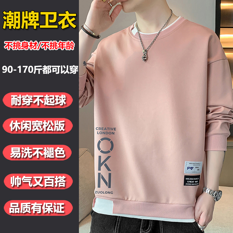 t恤上衣服潮牌外套 痞帅气秋衣长袖 圆领卫衣男春秋季 潮流2025新款