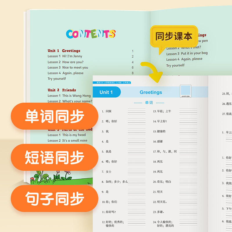 小学英语词汇单词默写同步课本三四五年级上下册单词短语句子默写记忆本单词听写训练英汉互译练习册教辅书 默写100鲁科版 易蓓
