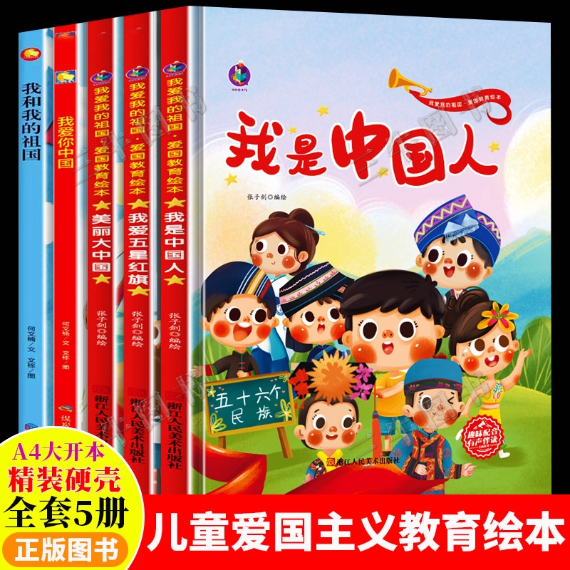 幼儿园硬壳儿童红色故事阅读精装 幼儿爱国主义教育绘本我是中国人我爱五星红旗我爱你中国我和我 祖国56个民族书籍主题关于祖国