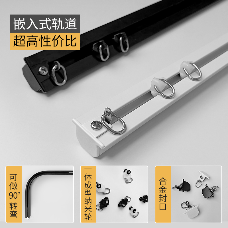 静音滑道 铝合金内嵌式 圣柔隐形窗帘轨道嵌入式 滑轮滑轨顶装