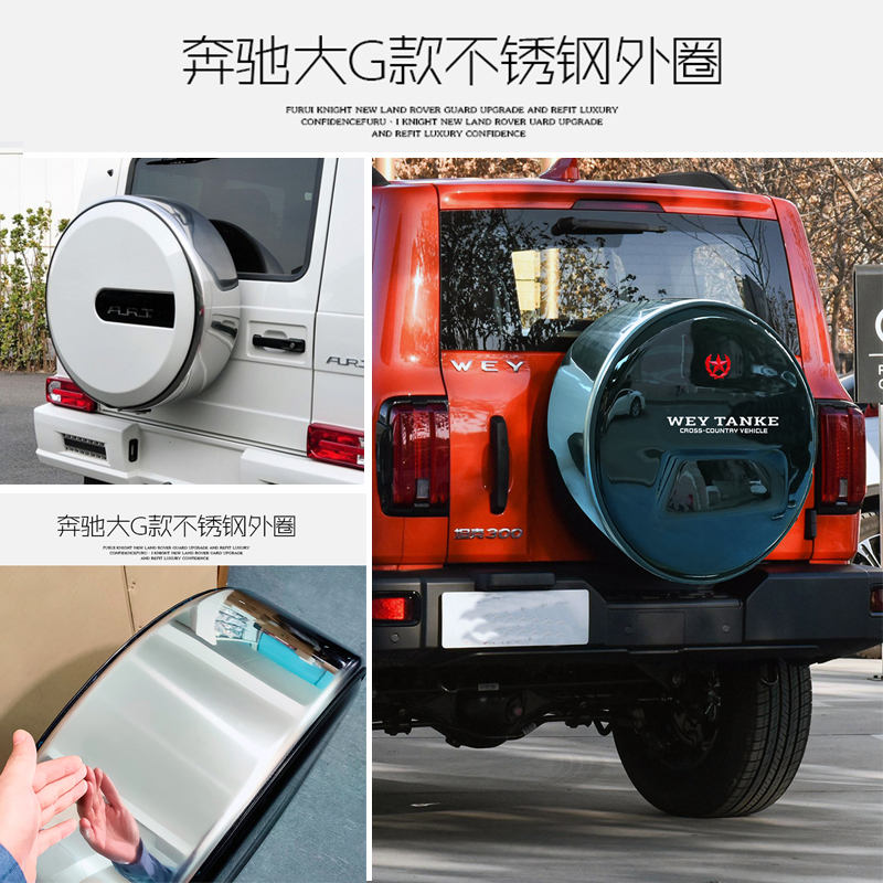 适用于坦克300备胎罩改装 不锈钢备胎书包 升级坦克300备胎灯大G款
