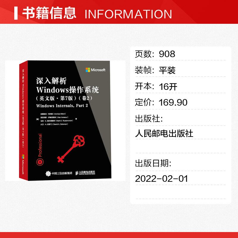 新华书店旗舰店文轩官网 社 ·第7版 等 正版 安德里亚·阿列维 英文版 美 人民邮电出版 深入解析Windows操作系统 书籍 卷2