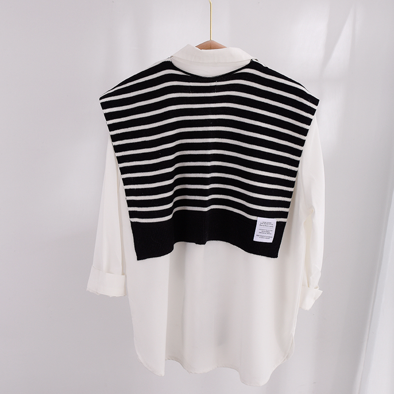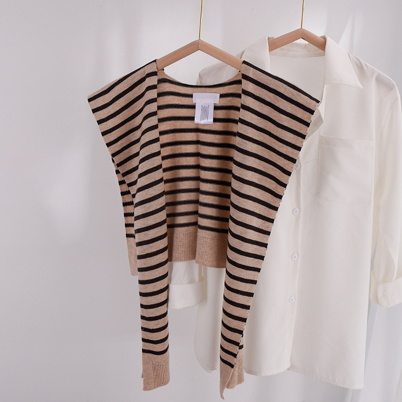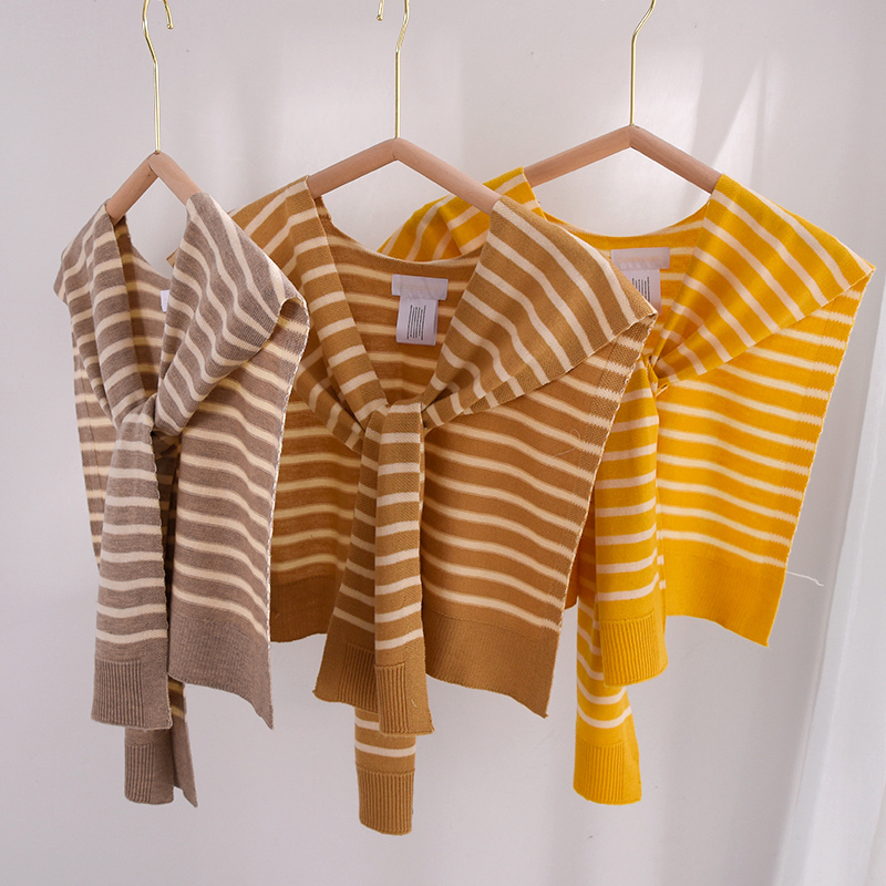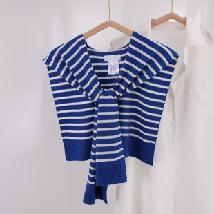 条纹针织披肩春秋女网红交叉斗篷小披肩外搭衬衫 百搭毛线围巾坎肩