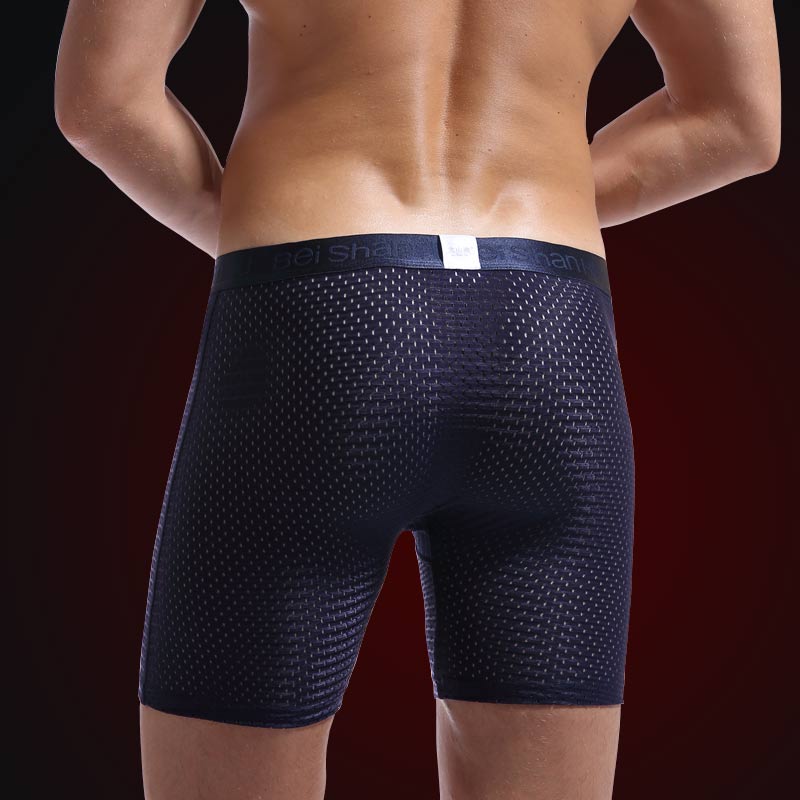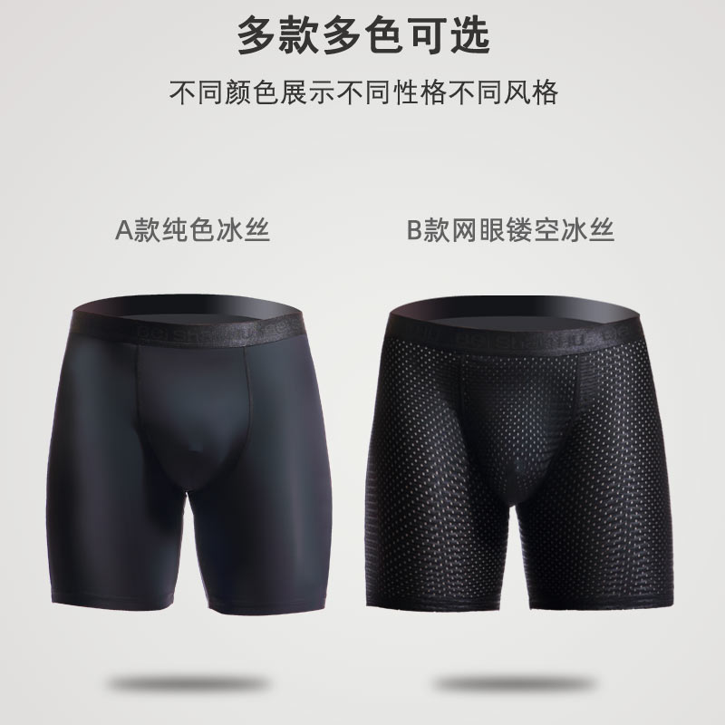 跑步运动防磨腿档冰丝网孔加大码 男士 防摩擦加长款 男平角裤 内裤