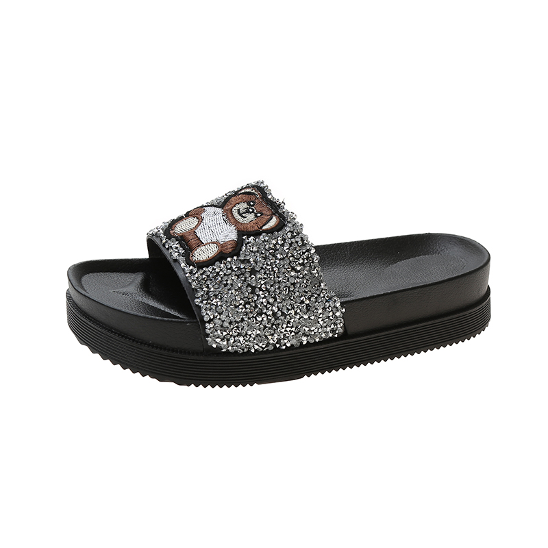 可爱小熊水钻一字拖松糕厚底防滑 室内外穿2025年新款 女夏季 凉拖鞋
