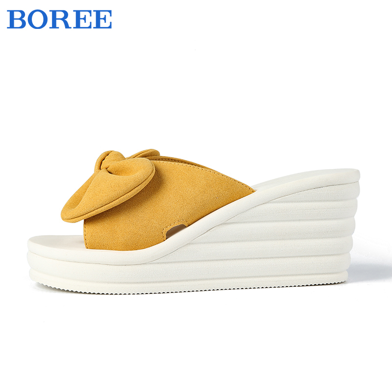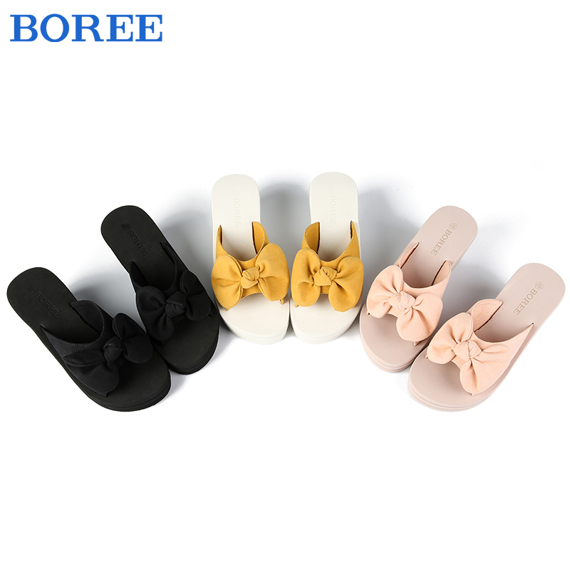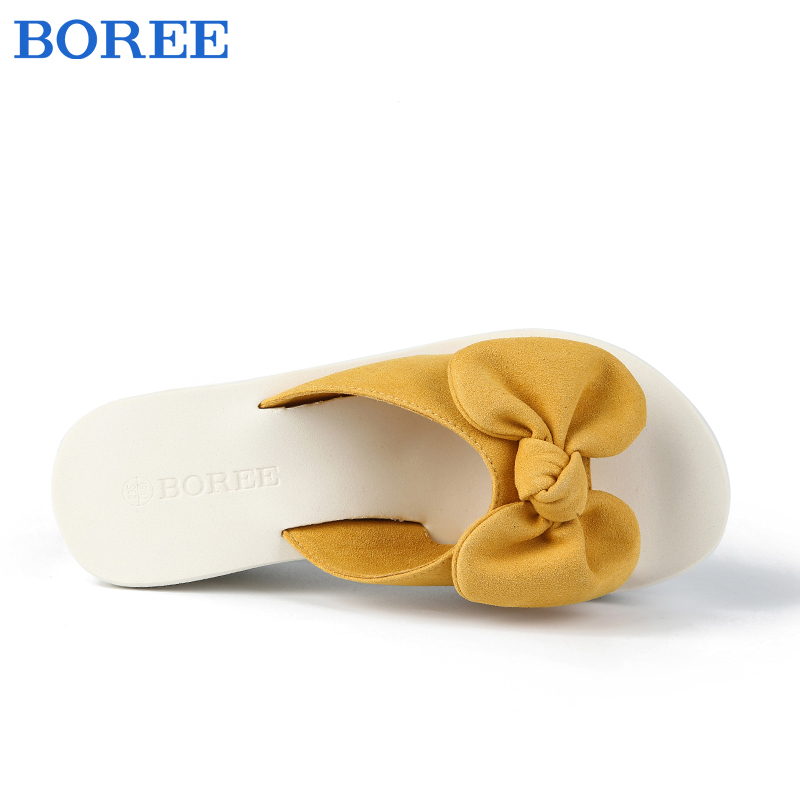 蝴蝶结坡跟增高百搭海边沙滩一字拖 外穿2025新款 宝人拖鞋 女夏季