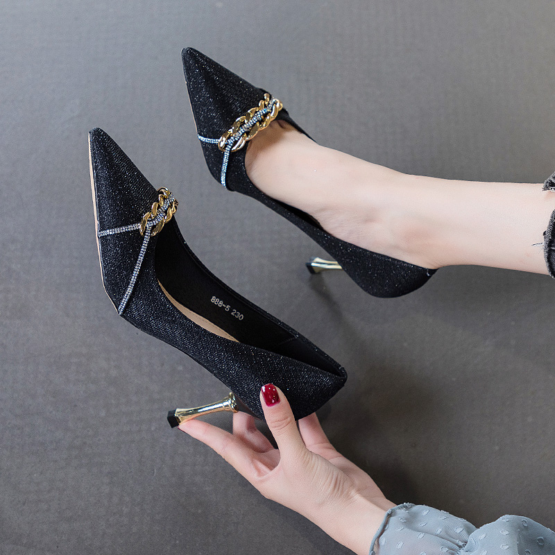 单鞋 百搭尖头浅口法式 女 女细跟优雅搭配裙子2025新款 香槟色高跟鞋