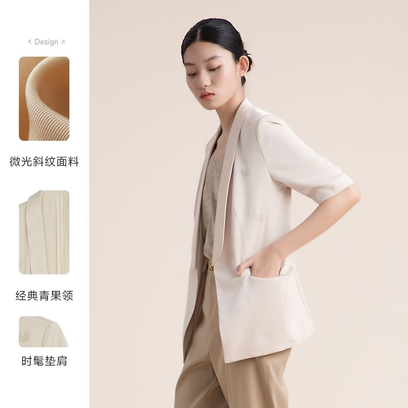 谜底2022夏季 高级感字母刺绣小众设计西服外套女222GW0618 新款
