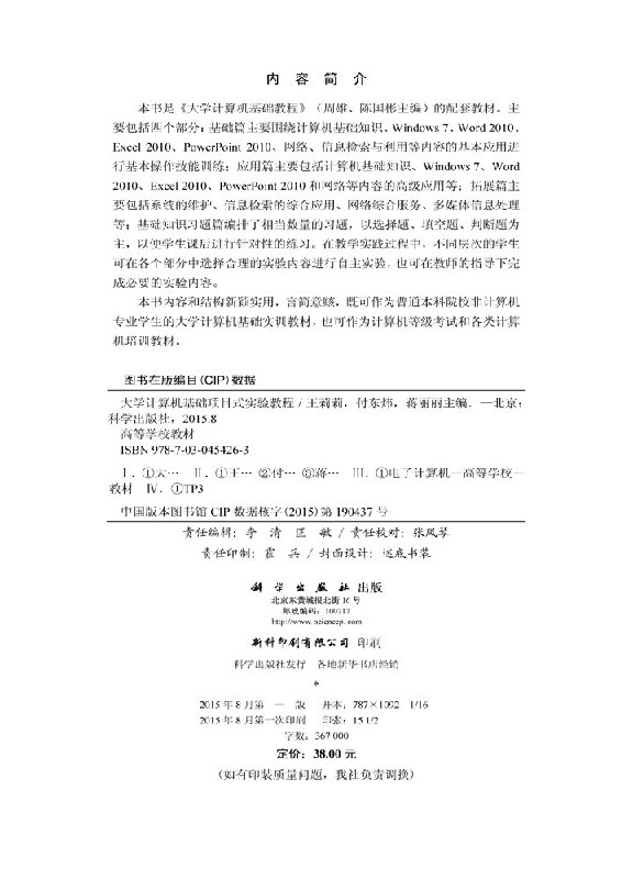 付东炜 王莉莉 蒋丽丽 正版 社9787030454263 大学计算机基础项目式 书籍科学出版 实验教程