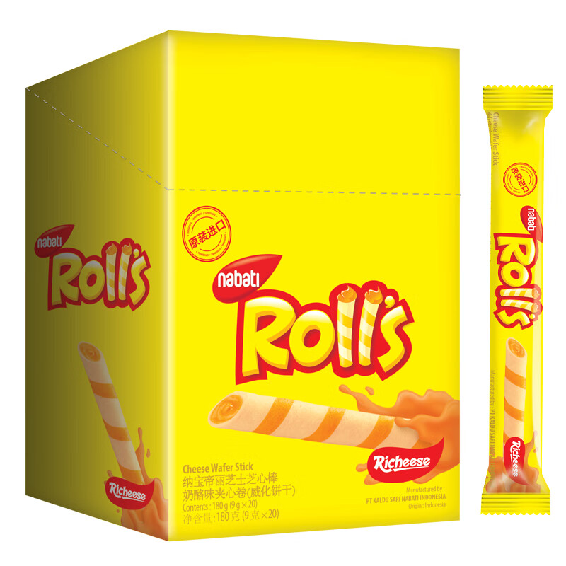 印尼进口食品丽芝士奶酪玉米棒注心蛋卷180g玉米棒160g独立包装