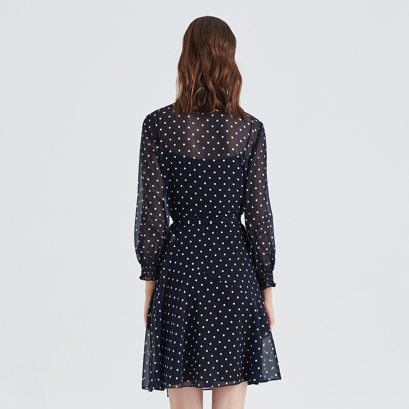 赫本风气质优雅黑色圆领收腰长袖 法式 连衣裙 朗姿2025冬新款 LANCY