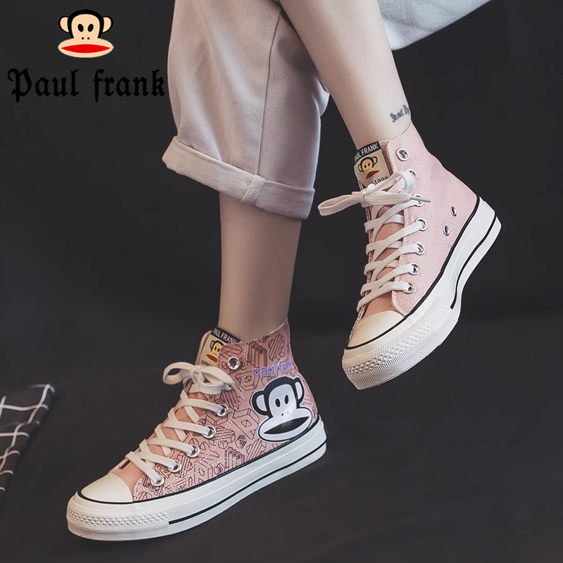 透气高帮粉色帆布鞋 春秋休闲布鞋 女2024夏季 女鞋 子 新款 大嘴猴女款