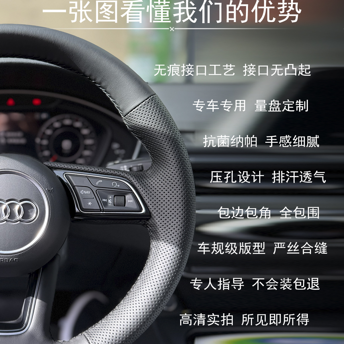 Q3Q5L 适用于奥迪新款 A3LA7A8 A6L Q7真皮手缝方向盘套全包围 A4L