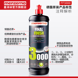 德国menzerna曼泽纳FF3000抛光蜡镜面蜡细抛螺旋纹雾影眩光液体蜡