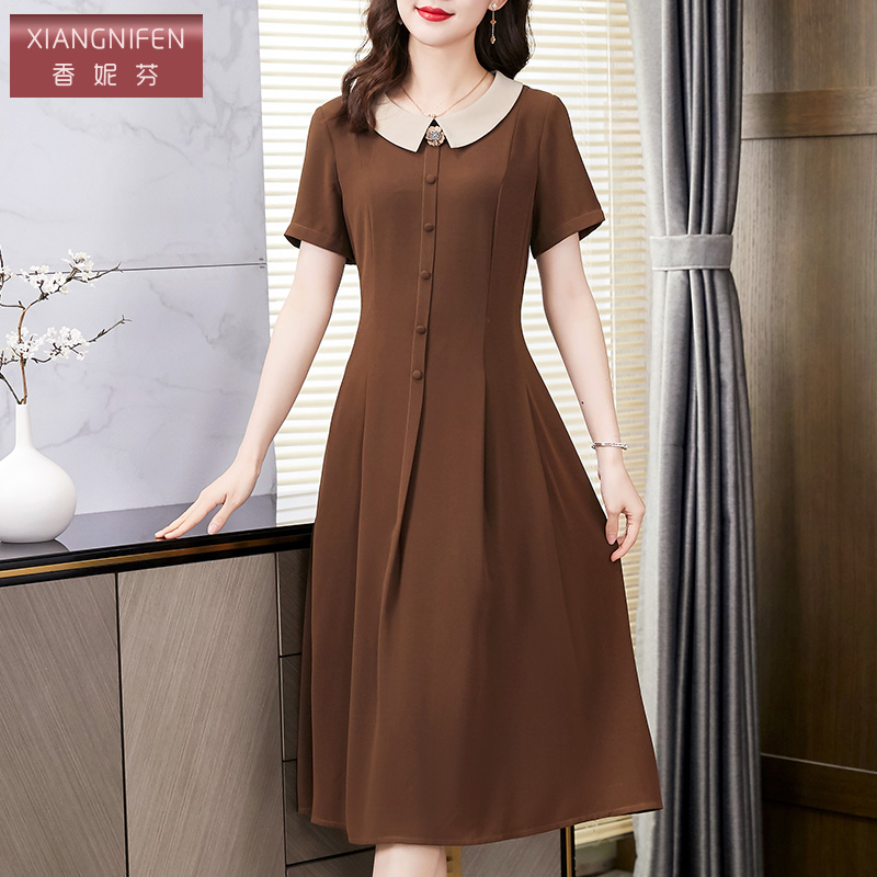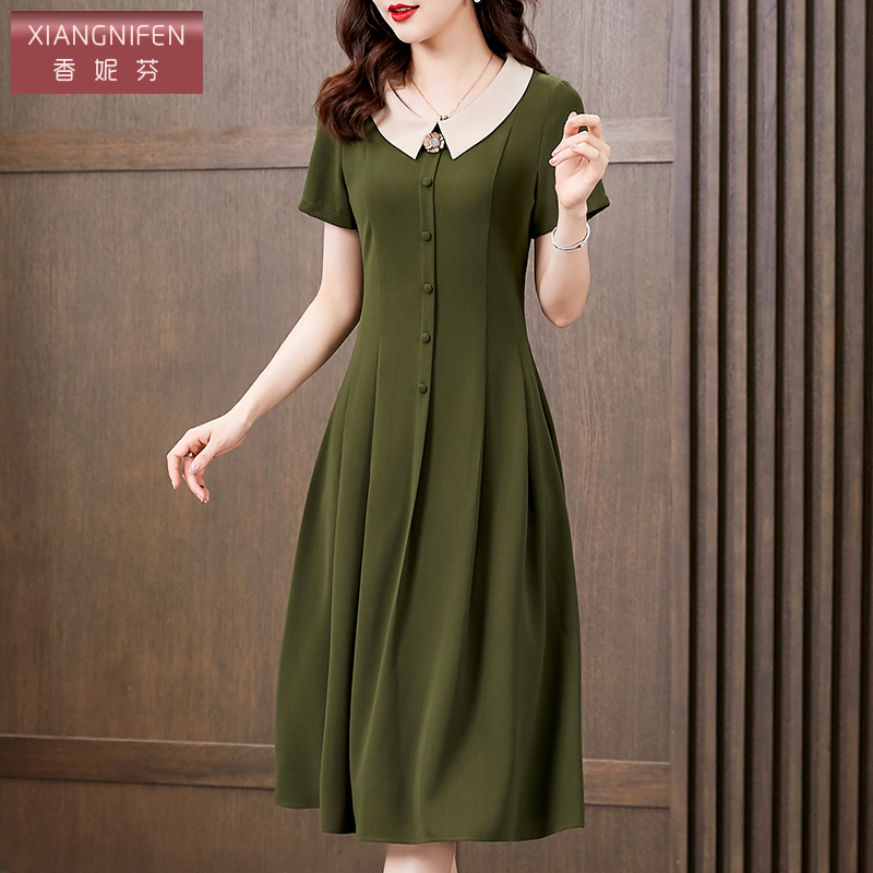 百搭淑女风收腰拼接A字裙中长裙 新款 Vero Moda连衣裙女2025秋季