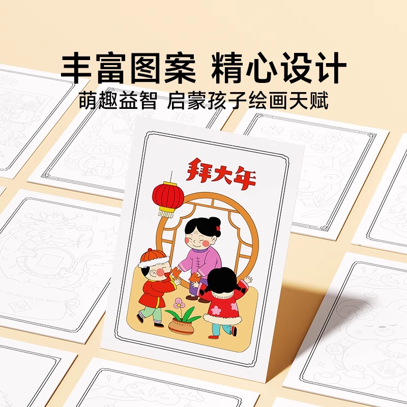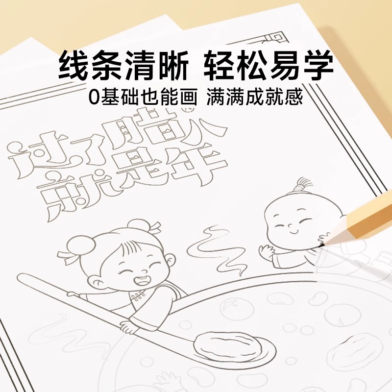 时光学儿童线描年画2025蛇年涂色线稿儿童画简笔画线描控笔训练临摹画册练习绘画线幼儿园奖励入门画本画册32张散页儿童趣味画画本