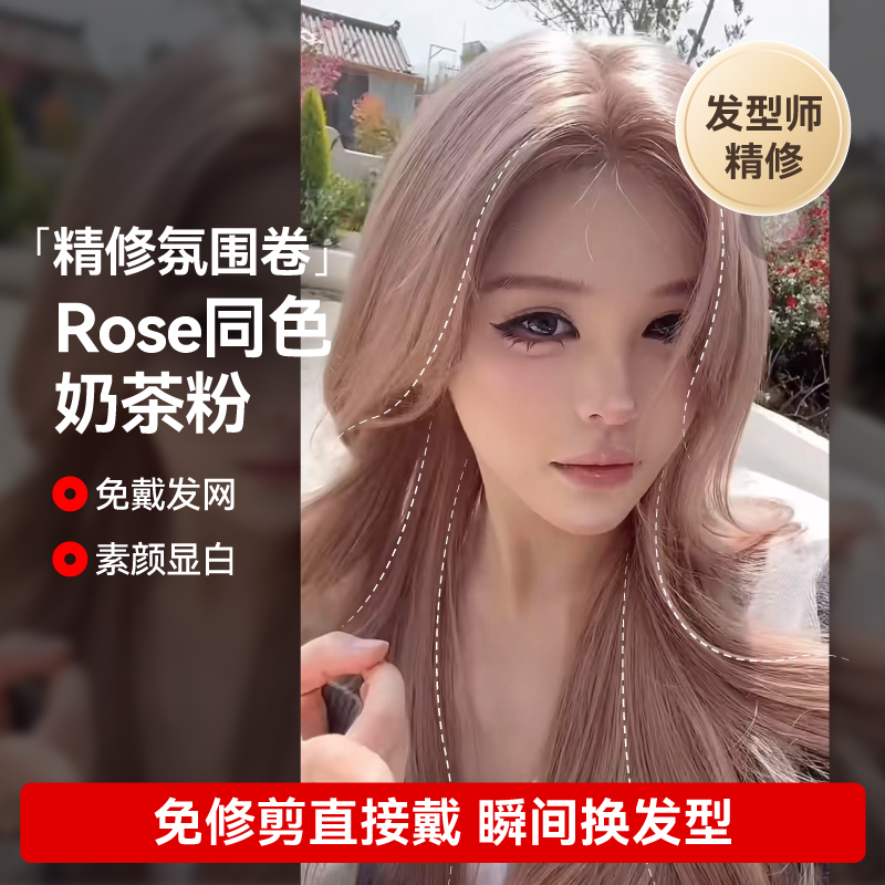 B612小玫瑰 假发 精修奶茶粉女全头套 免戴发网免修剪 LUCYLEE