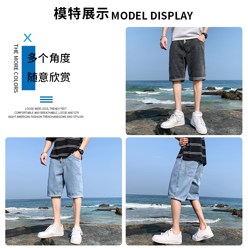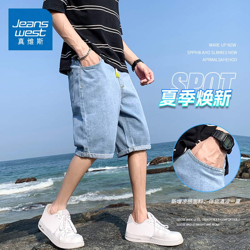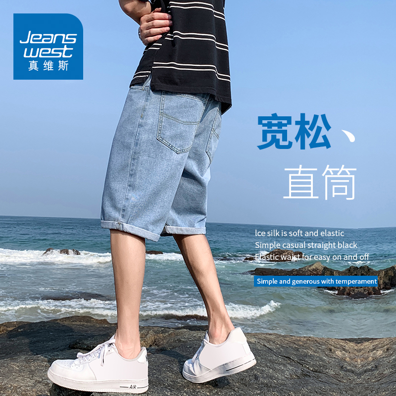 潮流休闲五分裤 KZH真维斯翻边牛仔短裤 宽松直筒中裤 新款 热 男秋季