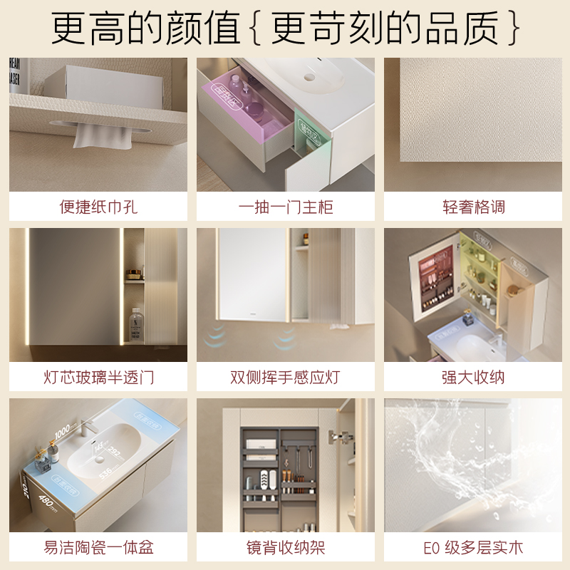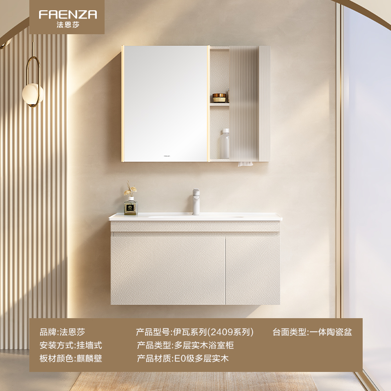 法恩莎一体陶瓷盆智能镜浴室柜卫生间置物洗漱台洗脸盆卫浴柜伊瓦