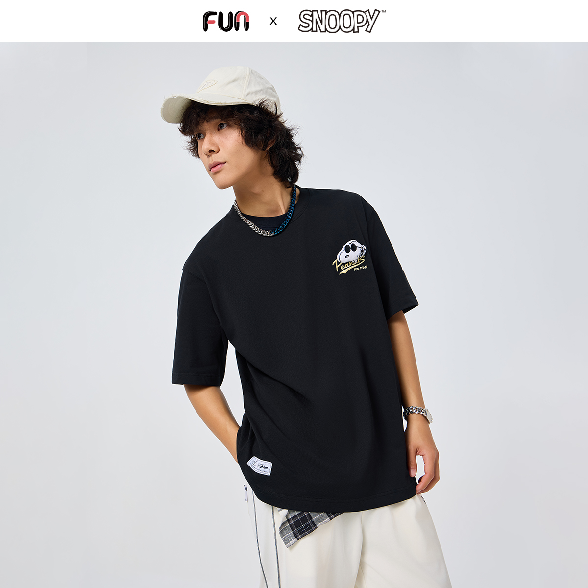 纯棉宽松圆领上衣线下商场同款 t恤男2025新款 短袖 Fun史努比联名款