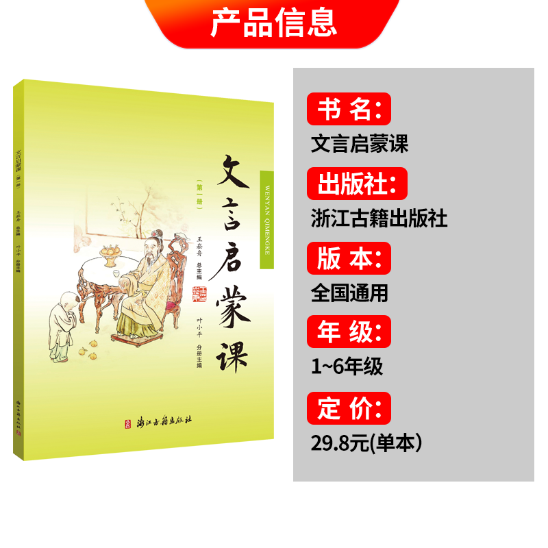 6册王崧舟浙江古籍小学生一1二2三3四4五5六6年级古文文言文阅读与训练经典 文言启蒙课1 第一册文化练习 包邮 新华书店旗舰店正版