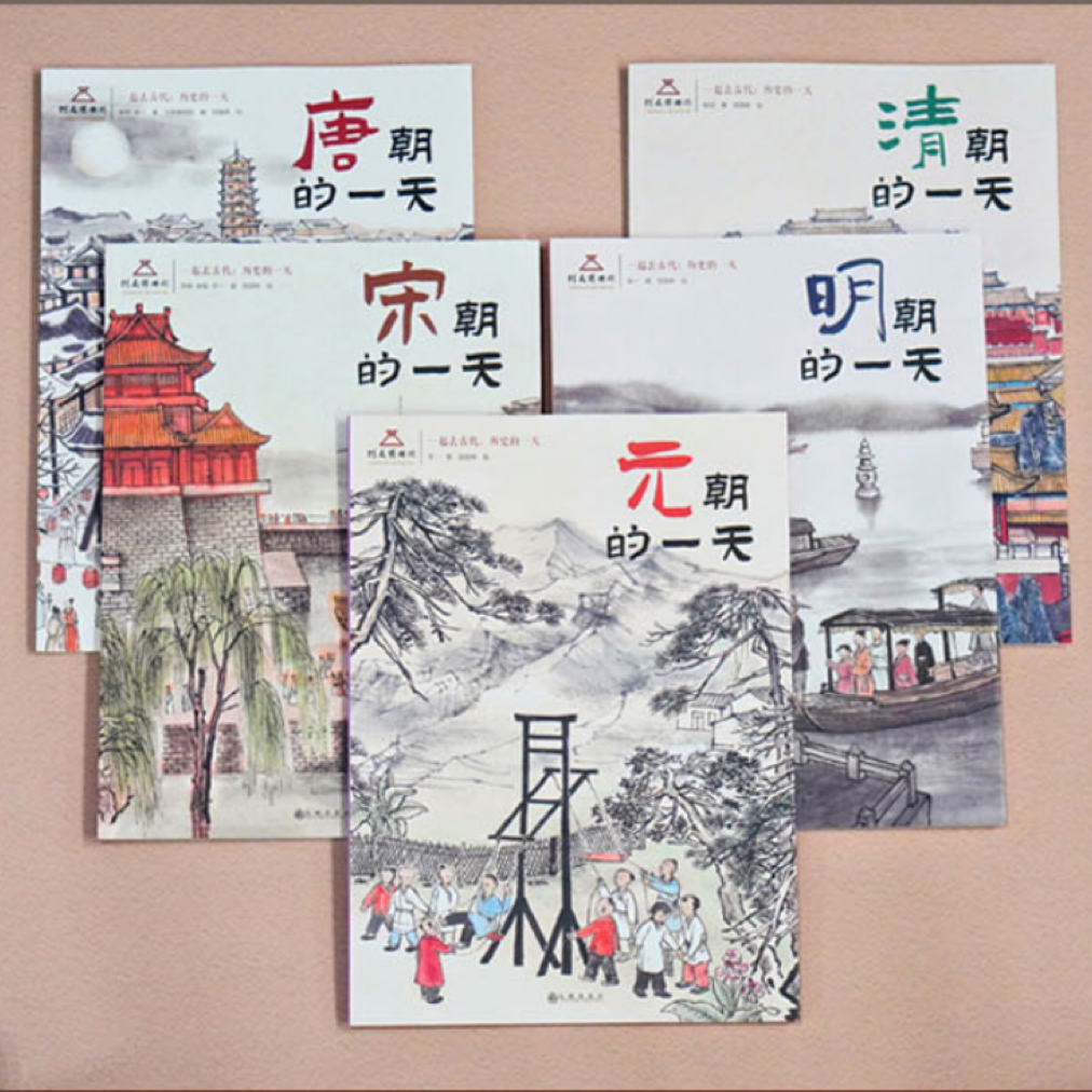 唐宋元 一天全5册 明清朝 一天 中国古代娱乐饮食文化旅游民俗历史启蒙绘本大8开本 正版 河南博物馆 一起去古代历史