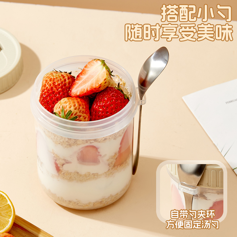 隔夜燕麦杯子带盖勺上班族便携早餐沙拉奶昔麦片水果酸奶杯碗外带