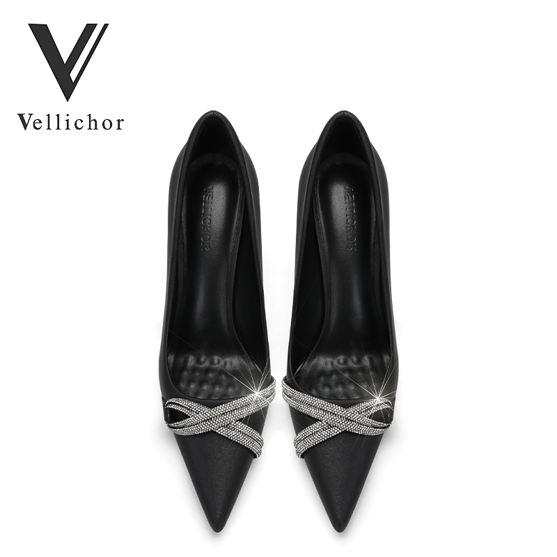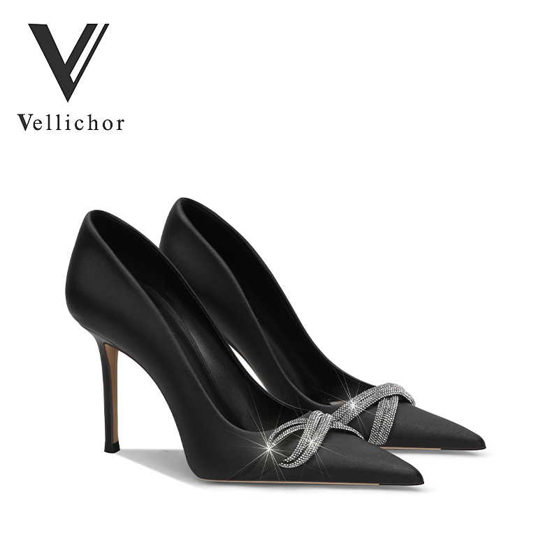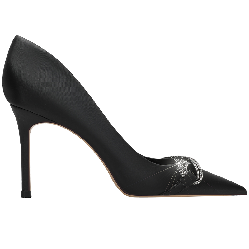 黑色职业高跟鞋 2025年夏季 性感尖头水钻法式 绸缎单鞋 女细跟 新款