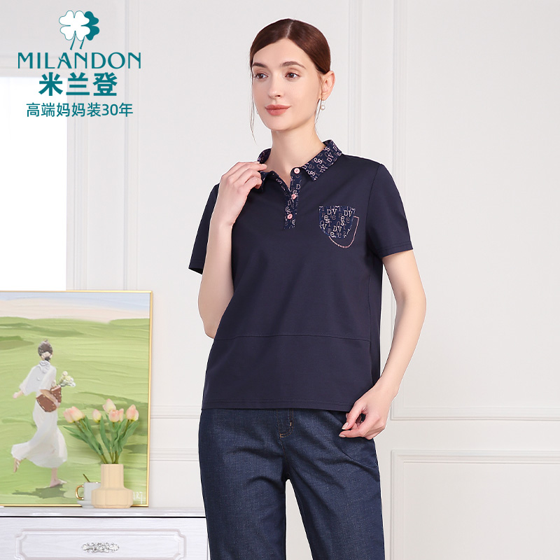 新款 polo领针织T恤衫 中老年妈妈装 短袖 休闲时尚 米兰登2025年夏季