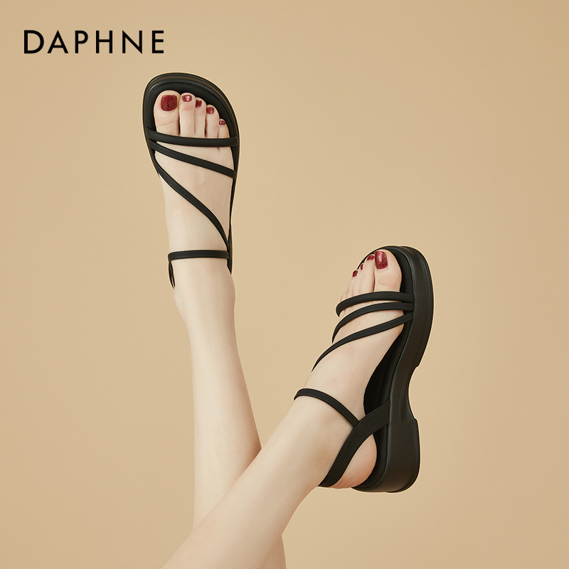 外穿软底鞋 夏季 子女2025新款 女鞋 女 达芙妮凉鞋 黑色女士平底鞋 女款