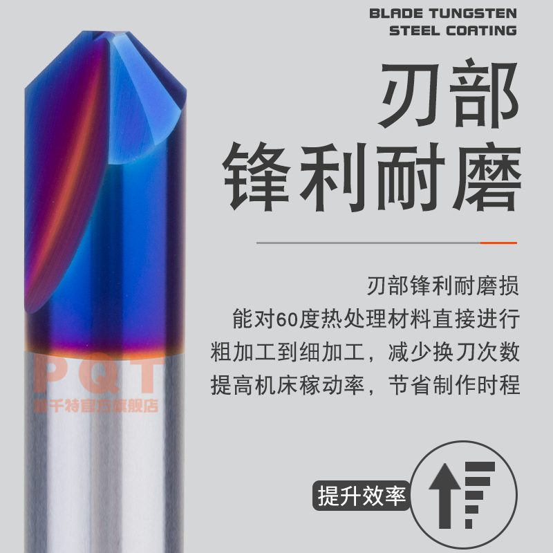 PQT平底倒角刀C角倒角铣刀钨钢二刃平头倒角高硬合金90度60度120