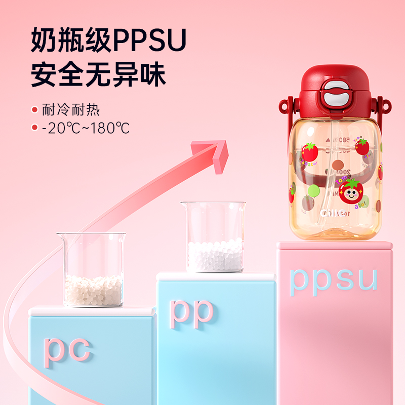 希乐儿童水杯ppsu吸管杯女生夏季 高颜值成人孕产妇专用耐高温杯子