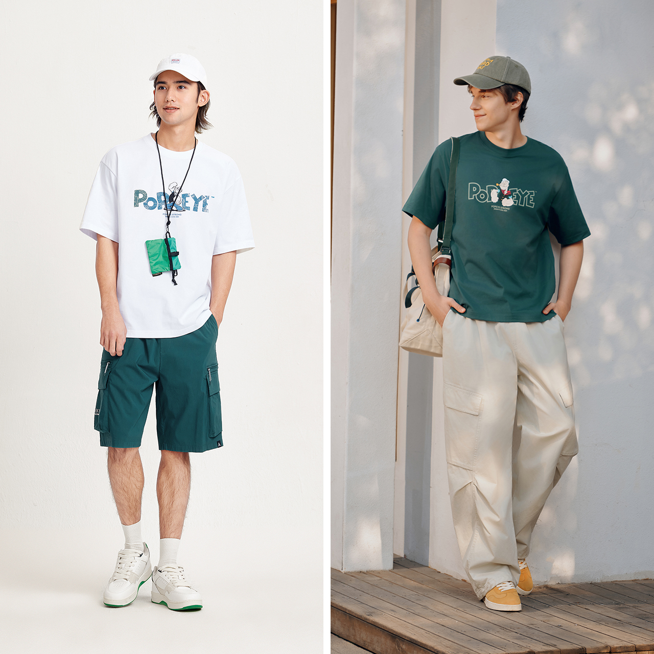 宽松印花上衣时尚 情侣装 T恤男凉感抑菌夏季 森马大力水手联名短袖
