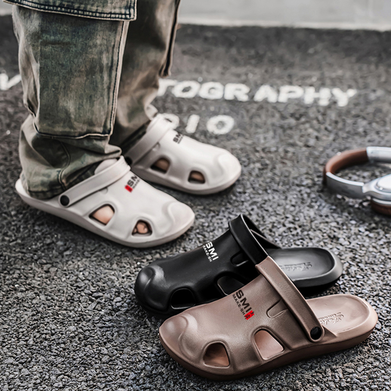 男夏季 运动防滑沙滩凉鞋 两穿软底洞洞鞋 大码 踩屎感包头半拖鞋 凉鞋