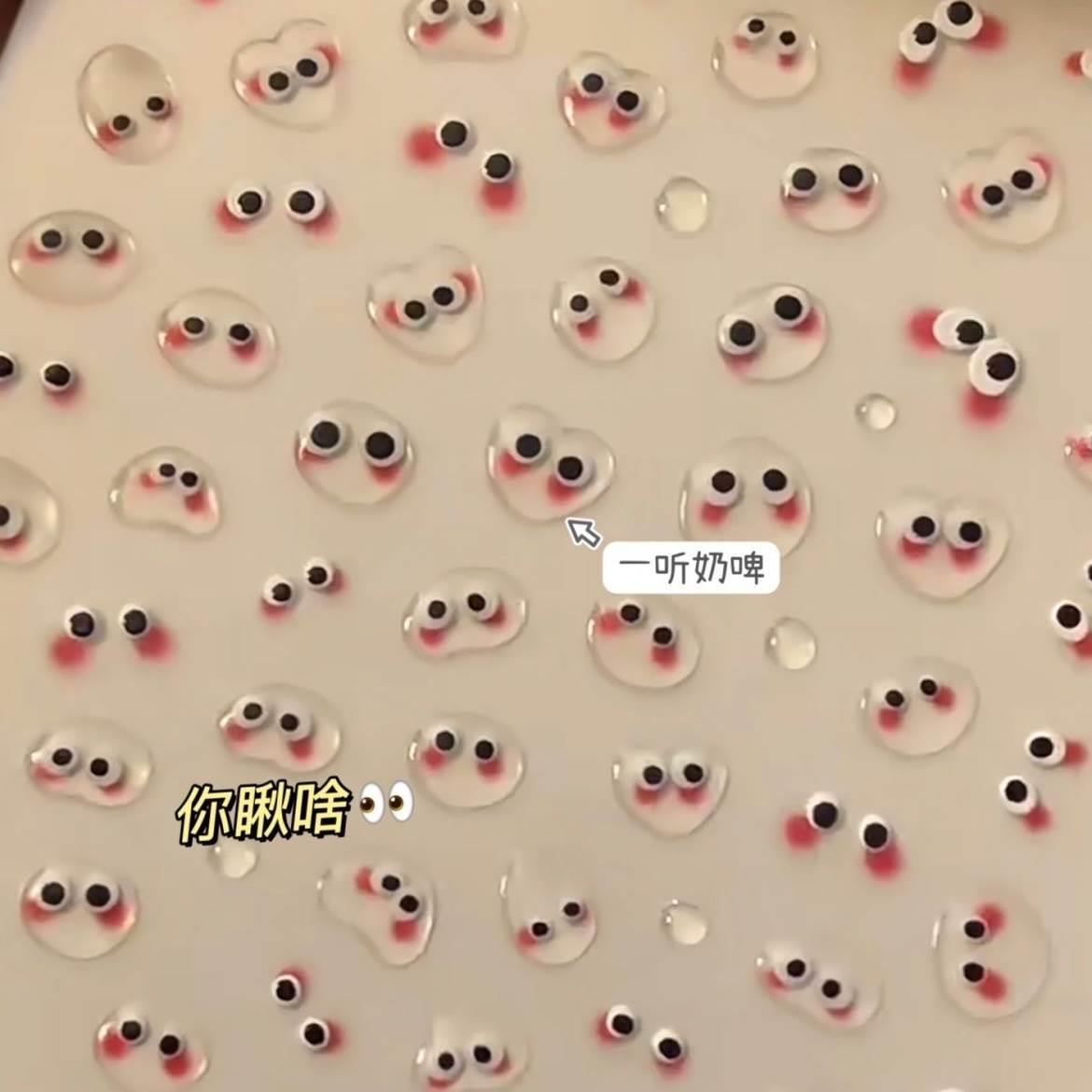小眼睛指甲贴纸美甲贴美甲贴纸水杯立体贴画贴纸小红书ins立体糖豆可爱糖豆豆透明日系水滴短搞怪diy防水装 饰
