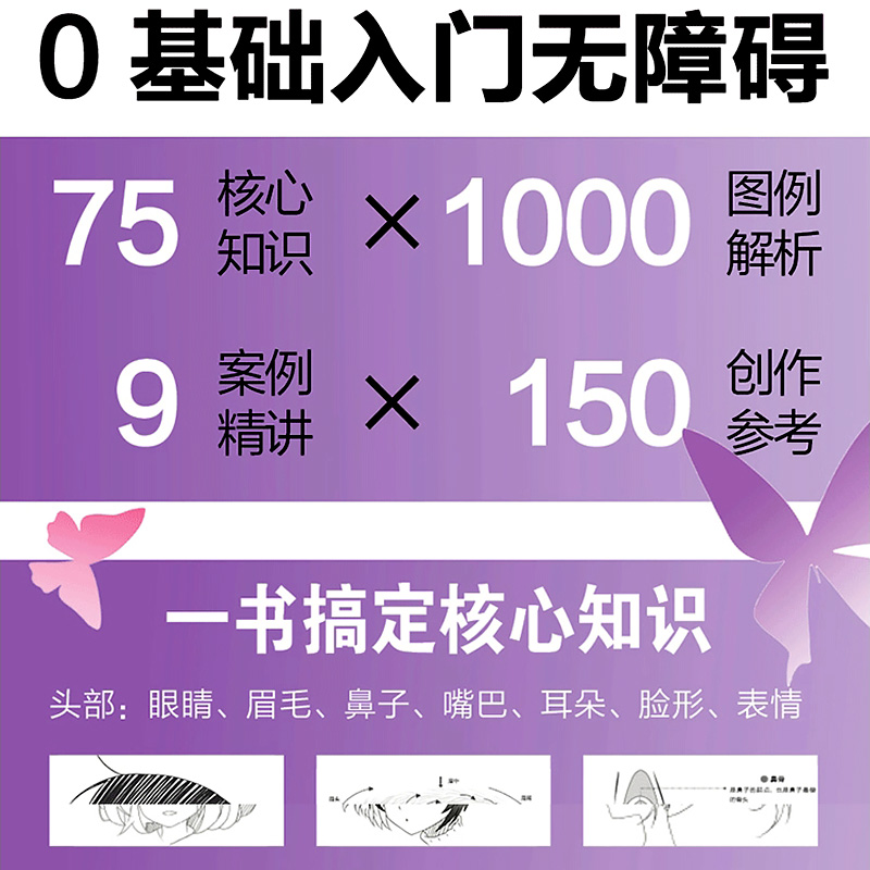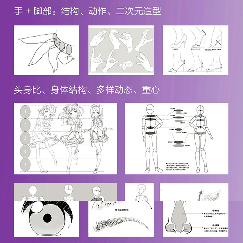 零基础新手自学动漫画二次元 入门精讲 人物角色设计造型手绘头身比例表情眼睛头发手脚服饰光影质感素描绘画技巧书 漫画技法 精编版
