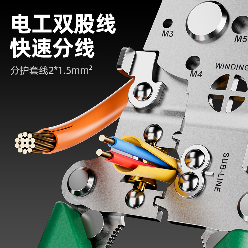 胜达新款 折叠多功能带测电剥线钳不锈钢电工专用钳子万用扒线工具