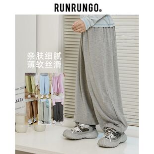 高腰垂感宽松直筒休闲裤 冰丝阔腿裤 大码 小个子2024新款 子 女夏薄款