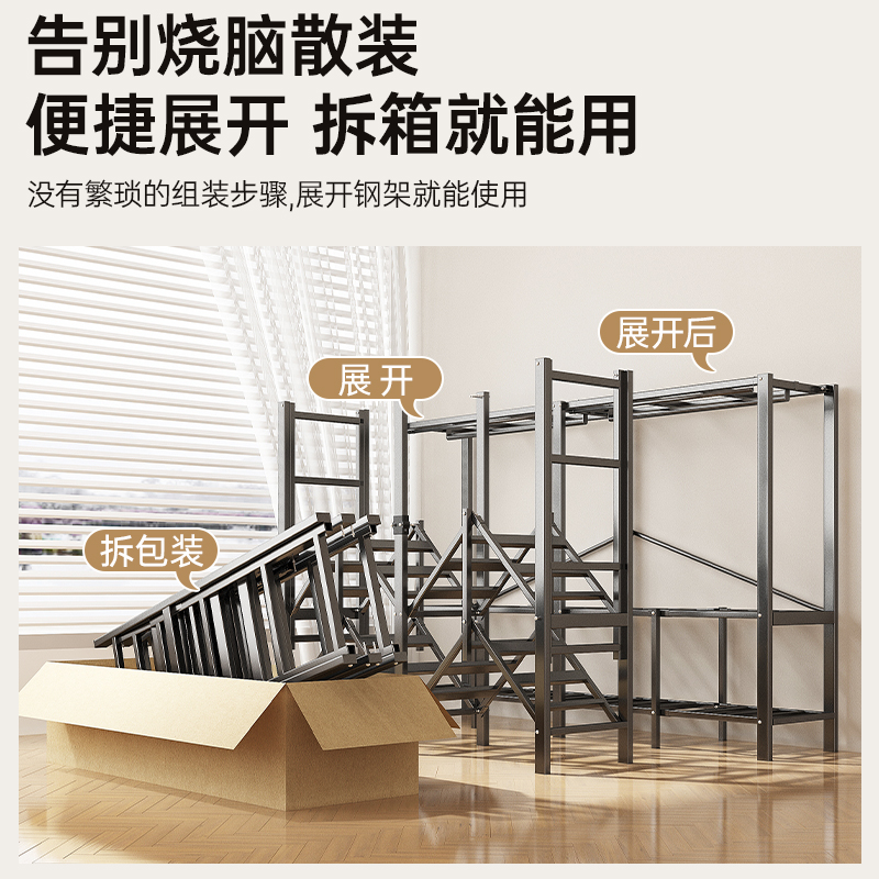 免安装 卧室家用布衣柜加厚结实耐用折叠全钢架出租房 衣柜简易组装