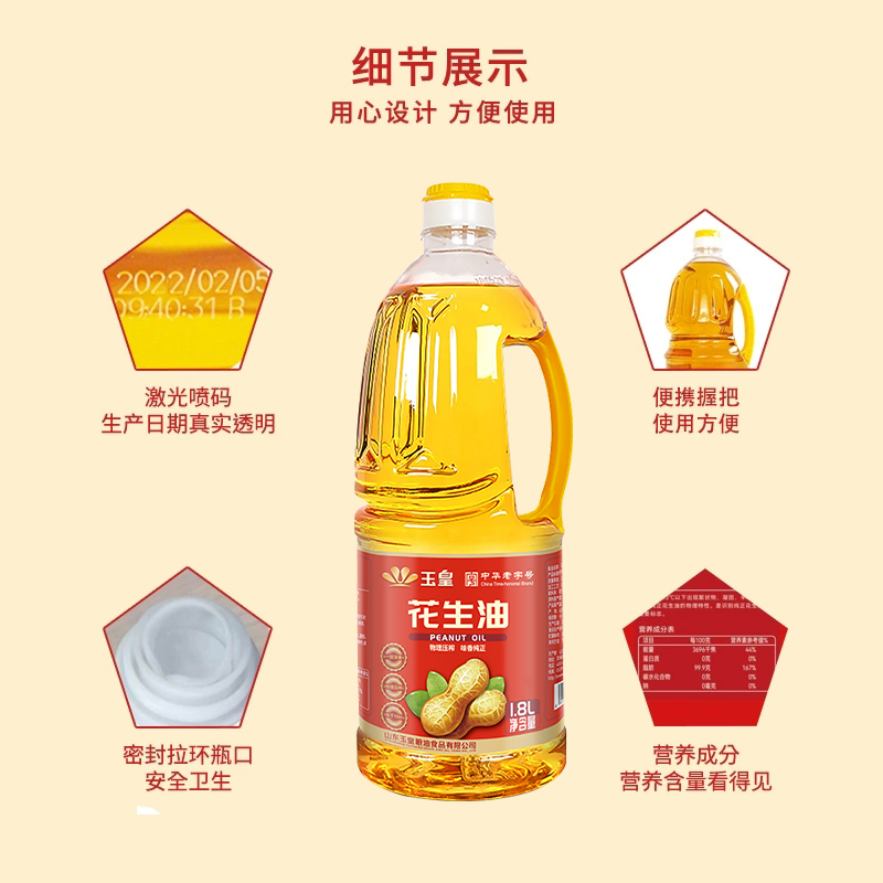 金龙鱼花生油不油腻花生油5L食用油家用炒菜物理压榨一级5升大桶