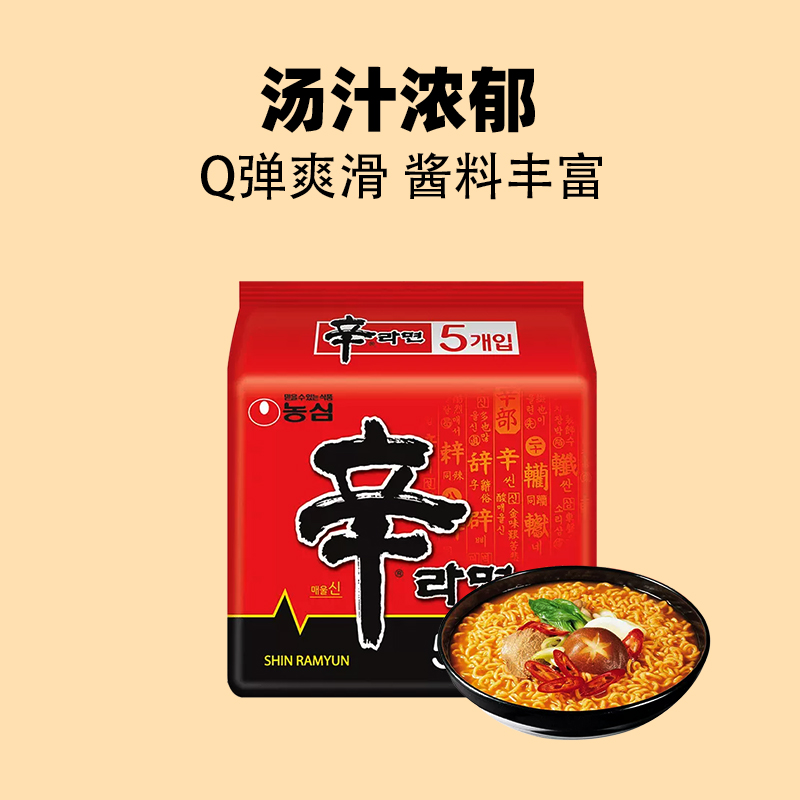 正宗拉面五连包袋装 韩国进口农心辛拉面韩式 速食方便面 自营