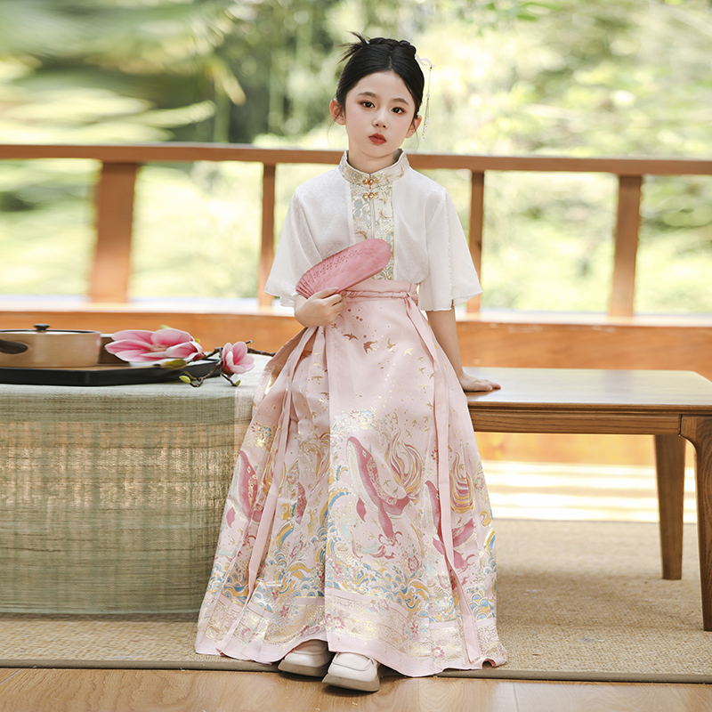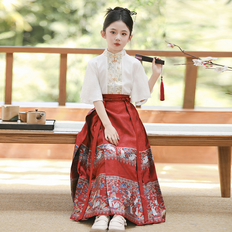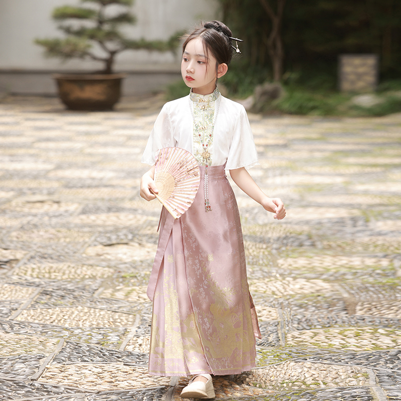 上衣中国风儿童演出服 女孩春夏汉服新中式 马面裙女童2025新款 春装