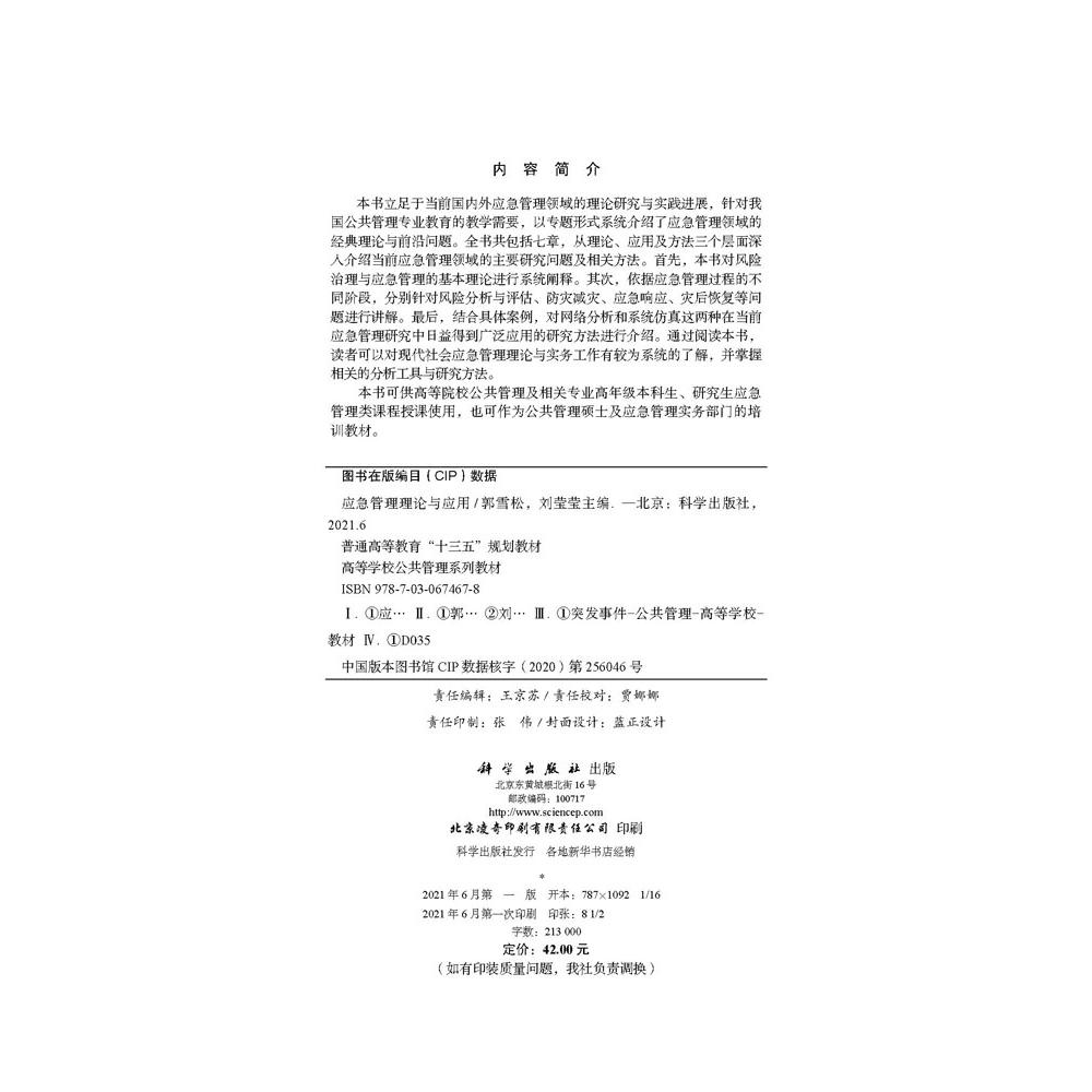 社 刘莹莹科学出版 应急管理理论与应用 郭雪松