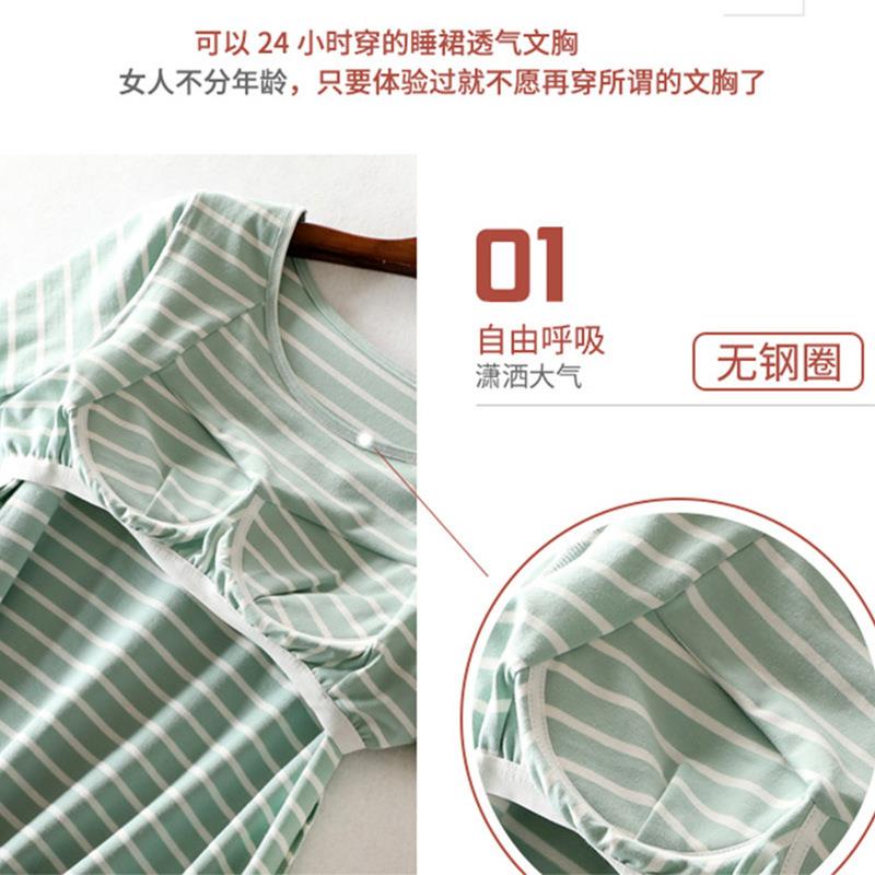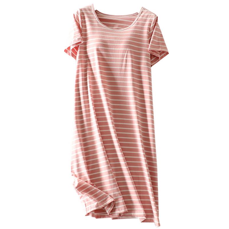 大码 长裙家居服夏款 条纹休闲可外穿 纯棉短袖 悦内睡裙女士睡衣夏季