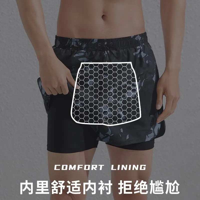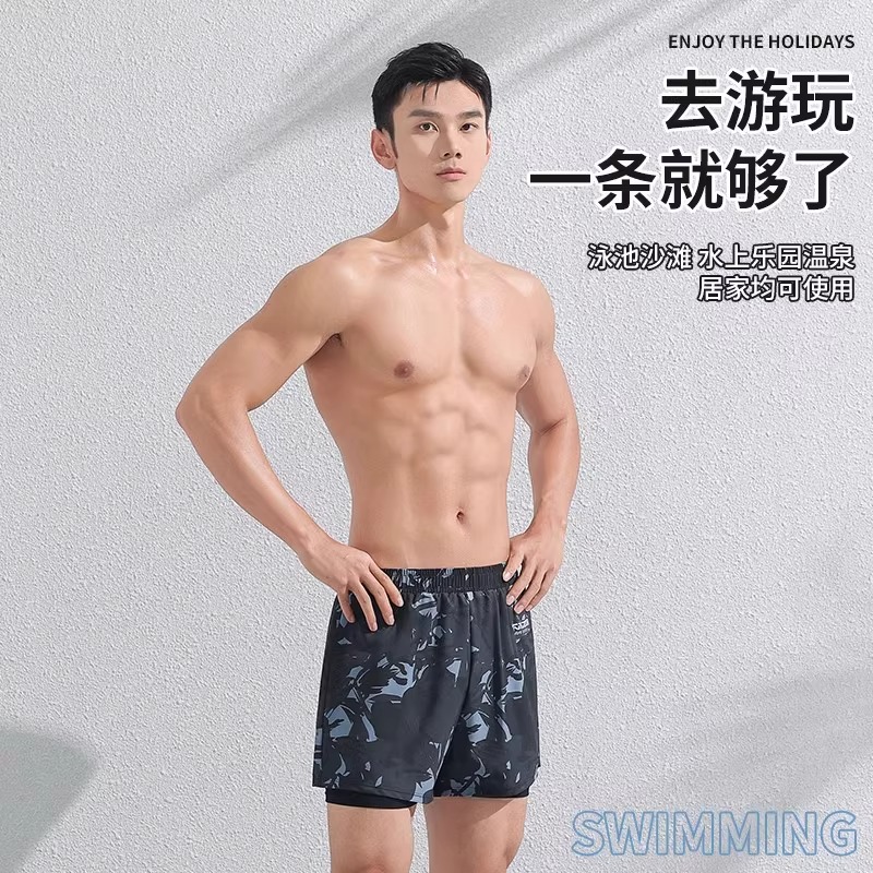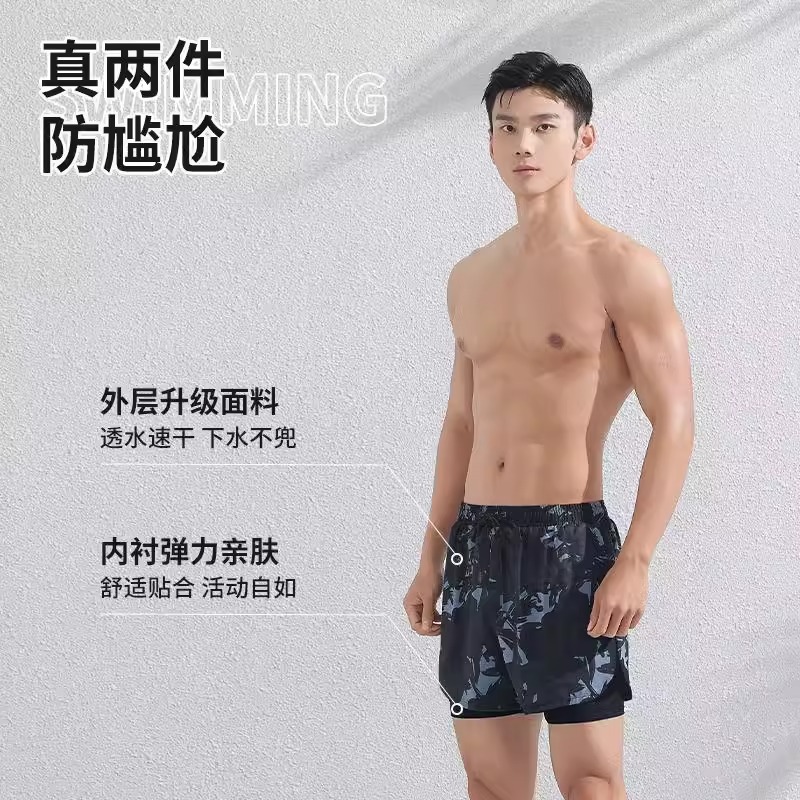青少年泳衣新款 游泳裤 专业沙滩裤 泳帽泳镜三件套防尴尬款 全套 男士