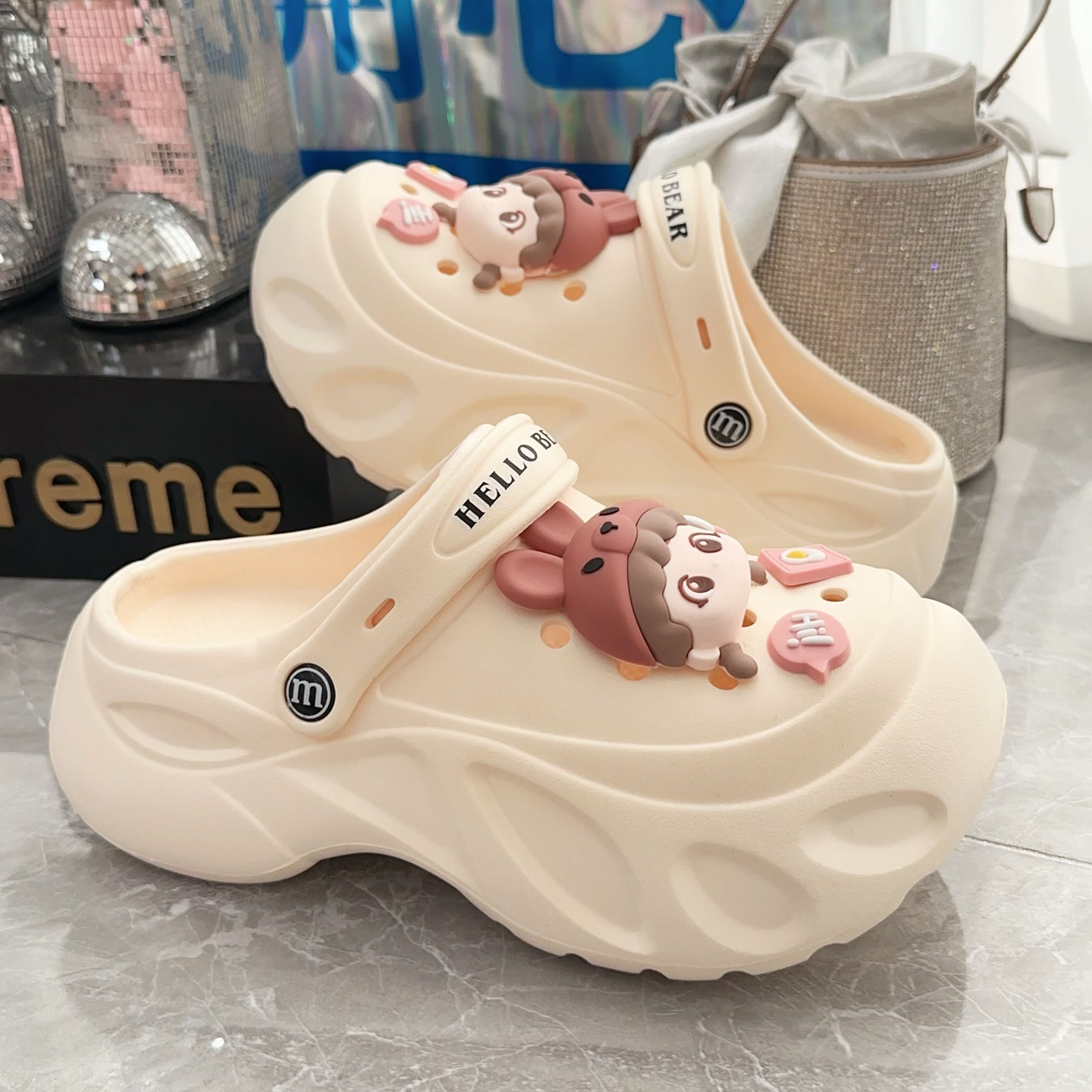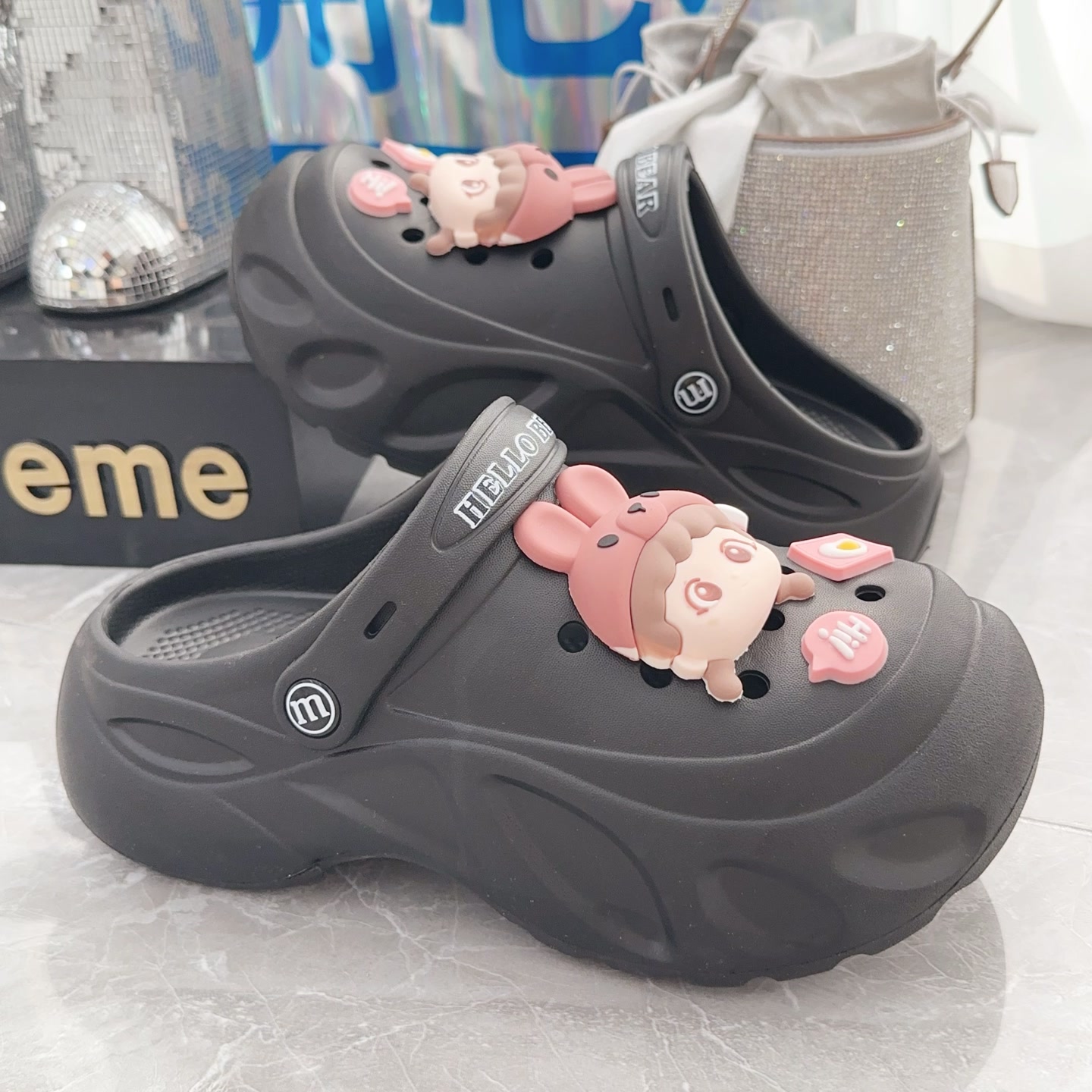 女 防滑洞洞鞋 轮胎5CM厚底EVA轻便小女孩标增高小众时尚 百搭女款